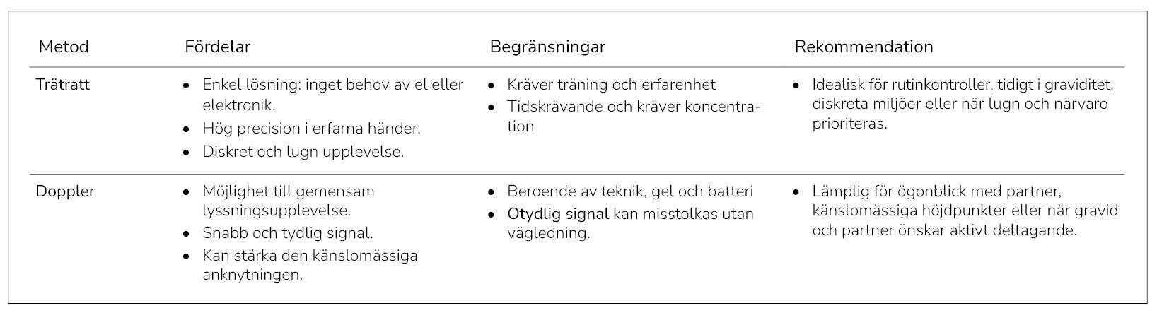 - Valet mellan trätratt och doppler beror på kliniskt syfte, den gravidas behov och det pedagogiska målet.